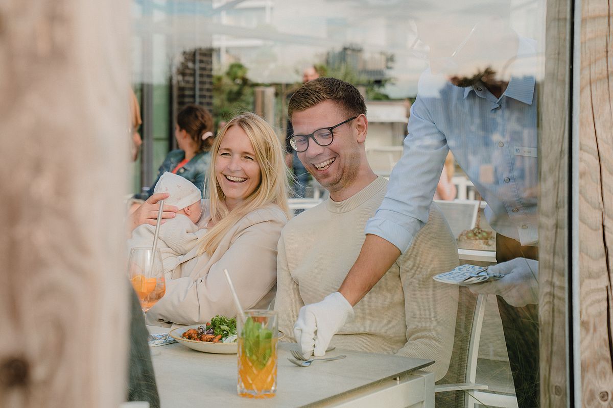 Der Tag beginnt mit einem abwechslungsreichen Frühstück direkt hinterm Deich. Mittags wird die Sonnenterrasse zum Lieblingsplatz für Herzhaftes, Kaffee oder Kuchen mit Weitblick.