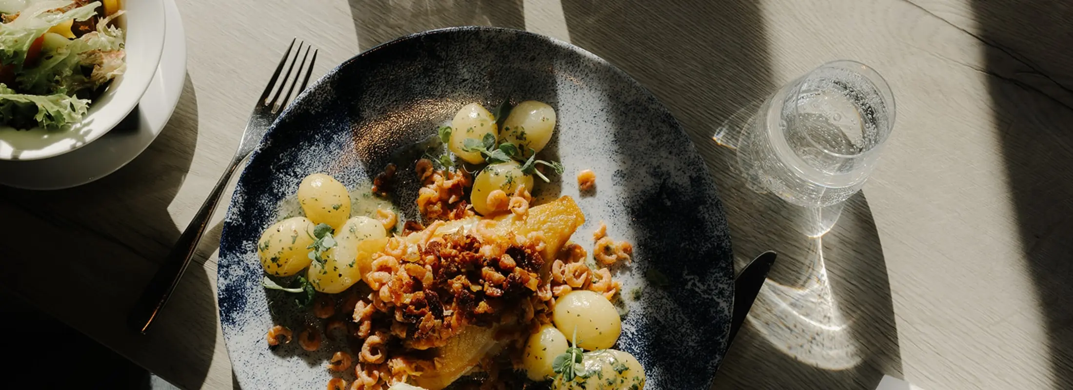 Die Küche verbindet regionale Zutaten mit modern interpretierter Nordsee-Küche. Frische, Qualität und saisonale Produkte stehen dabei im Mittelpunkt.